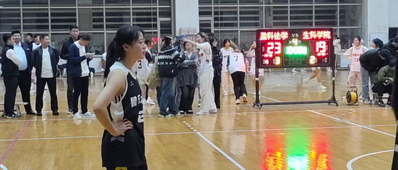 在最令人激动的决赛中,现场气氛热烈且紧张,观众的欢呼声和呐喊声此起彼伏。法学院面对的是曾蝉联两届冠军的生命科学学院女篮,双方开场便展开了激烈的竞争,盈科法学院在中场比分落后的情况下,凭借着队长李昕三分球的稳稳命中和快速突破上篮,以及其他队员们的不懈奋斗,最终完成反击并逐渐将比分拉开。随后,法学院女篮们并没有丝毫懈怠,更是稳扎稳达,最终锁定胜局,时隔一年,法学院学生女篮又再一次夺得校级篮球联赛的冠军,成功卫冕。