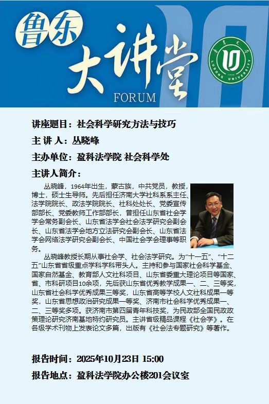 【鲁东大讲堂】社会科学研究方法与技巧