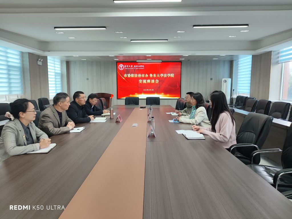 近日,市委依法治市办秘书科科长(四级调研员)尹爱华、科员阎瑾、科员栾钧博一行三人莅临鲁东大学法学院,就健全以实践为导向的法治人才培养机制开展专题调研。鲁东大学法学院副院长(主持行政工作)张祥伟、院长助理郭学文、法律系主任侯鲜明、院长助理单佳出席调研活动。